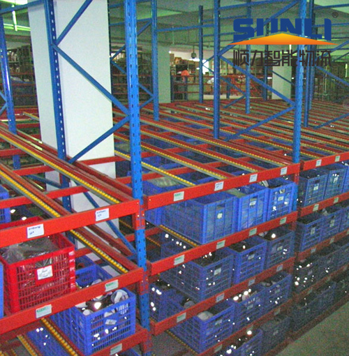 货架整层流利条倾斜设计装置,货物靠重力作用自动向下滑动存储,货物可实现先进先出存放。该系统对于管理有保质期的货物尤其重要,并可缩短检查时间,提高工作效率与准确性。