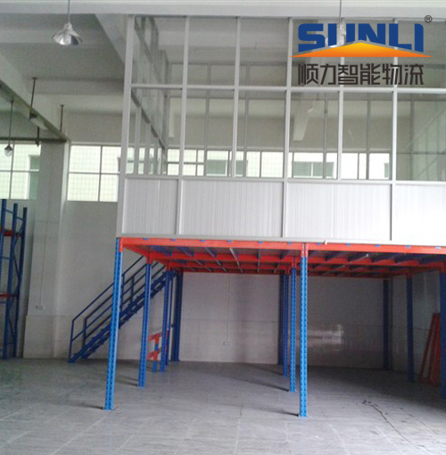 双倍地利用地面空间,提高空间利用率,降低营运成本。可根据仓库空间设计平台跨度(3000~6000mm),较大承受重量可达到 1000KG/㎡,通常搭配升降平台使用上下货,效率倍增。楼面空旷处配防护栏,并配置方便上下走动的楼梯使用。平台面板可选用木板,钢板或钢扣板。整体美观、结构稳固安全、并可拆卸。